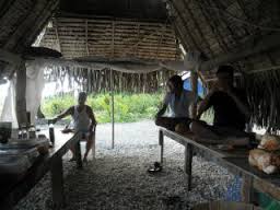 3.「Tさん、コンニチワ」コンパの島民オブライアンがやってきました。コンパとは当時、駐屯していた日本人にお世話役として付いた島民のことです。「今日は魚取りにいきましょう!」