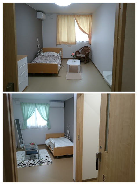 トイレ付のお部屋とトイレなしのお部屋があり、トイレなしのお部屋は、トイレ付のお部屋よりも月額2000円お安いそうです。わかりにくいですが上段がトイレ無・下段がトイレ有のお部屋の写真です。