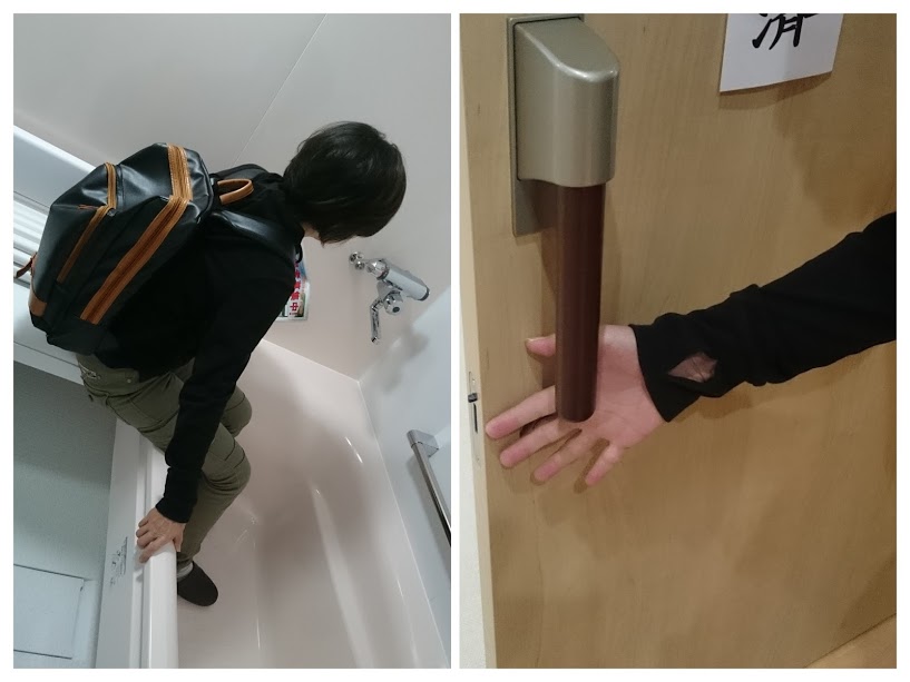 廊下に設置してあるおトイレも広く、浴室の床は柔らかい素材のものを使用していたり、居室ドアの手すりや、浴室の手すりにも持ちやすい工夫がされていました。